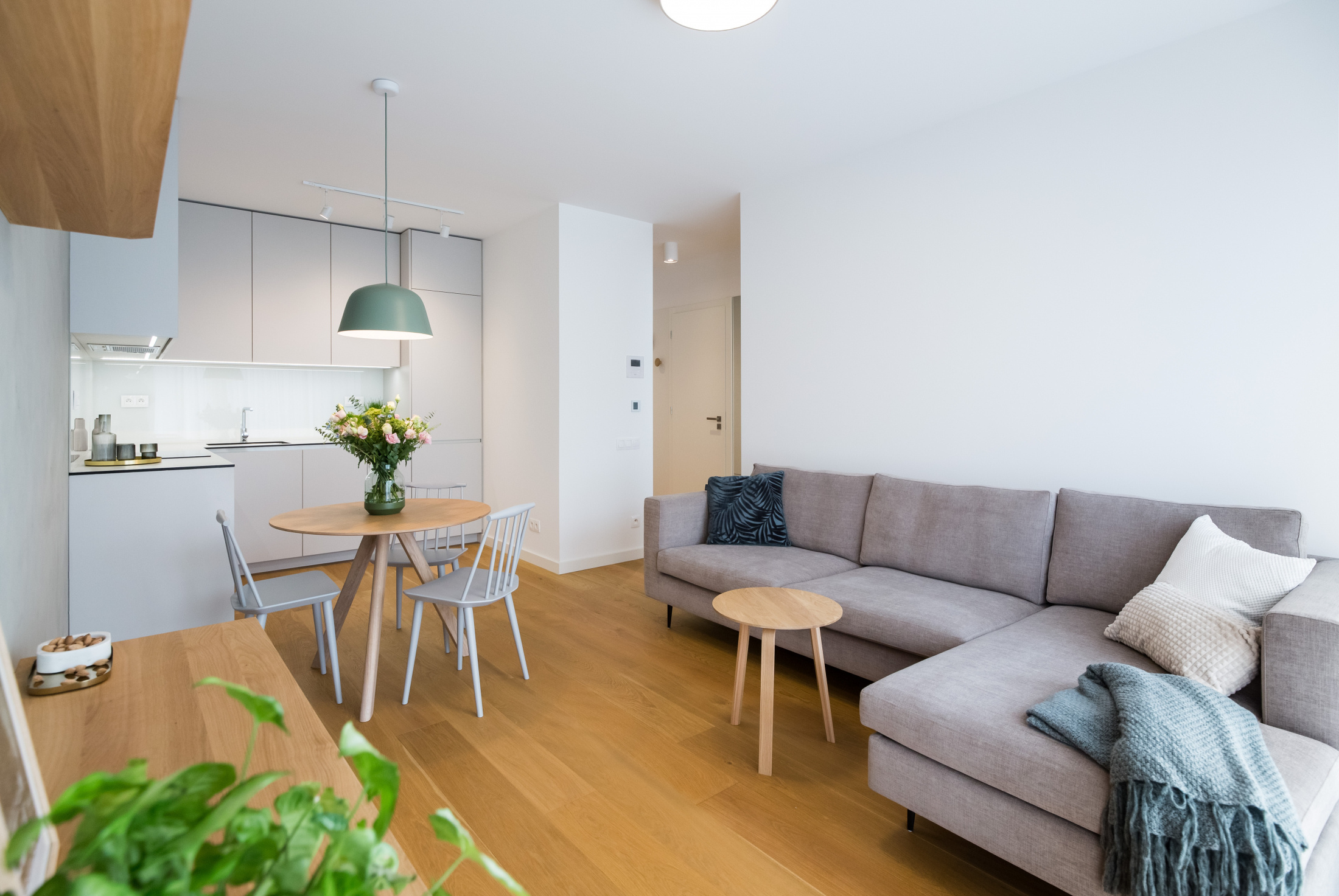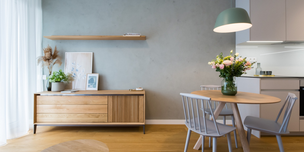 Interiér bytu Eurovea Tower II. s výhľadom na mesto