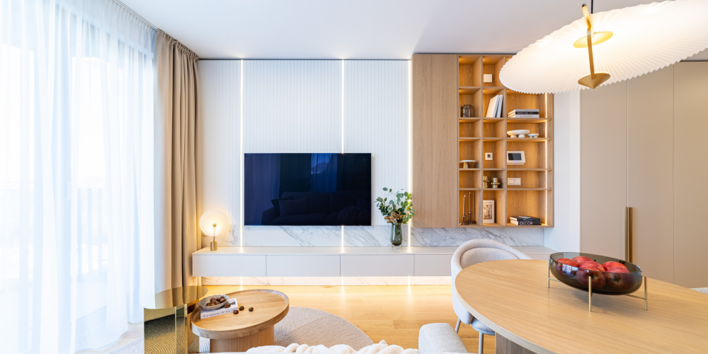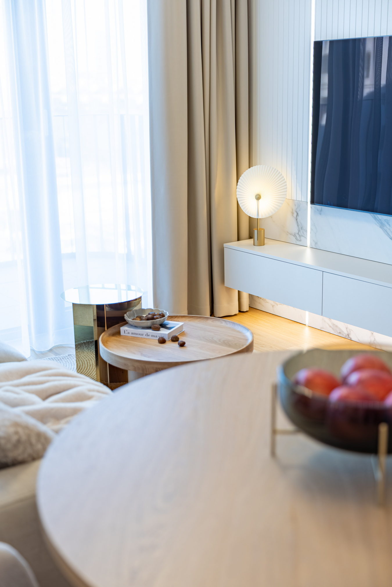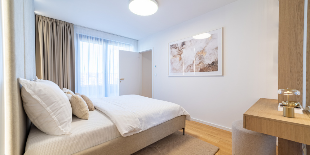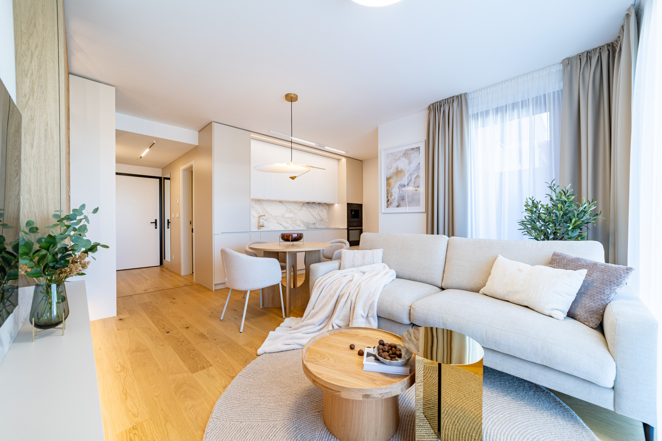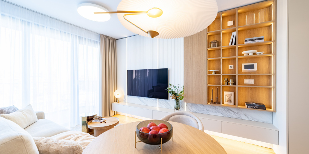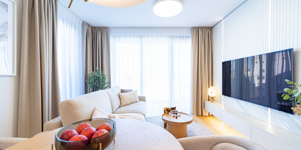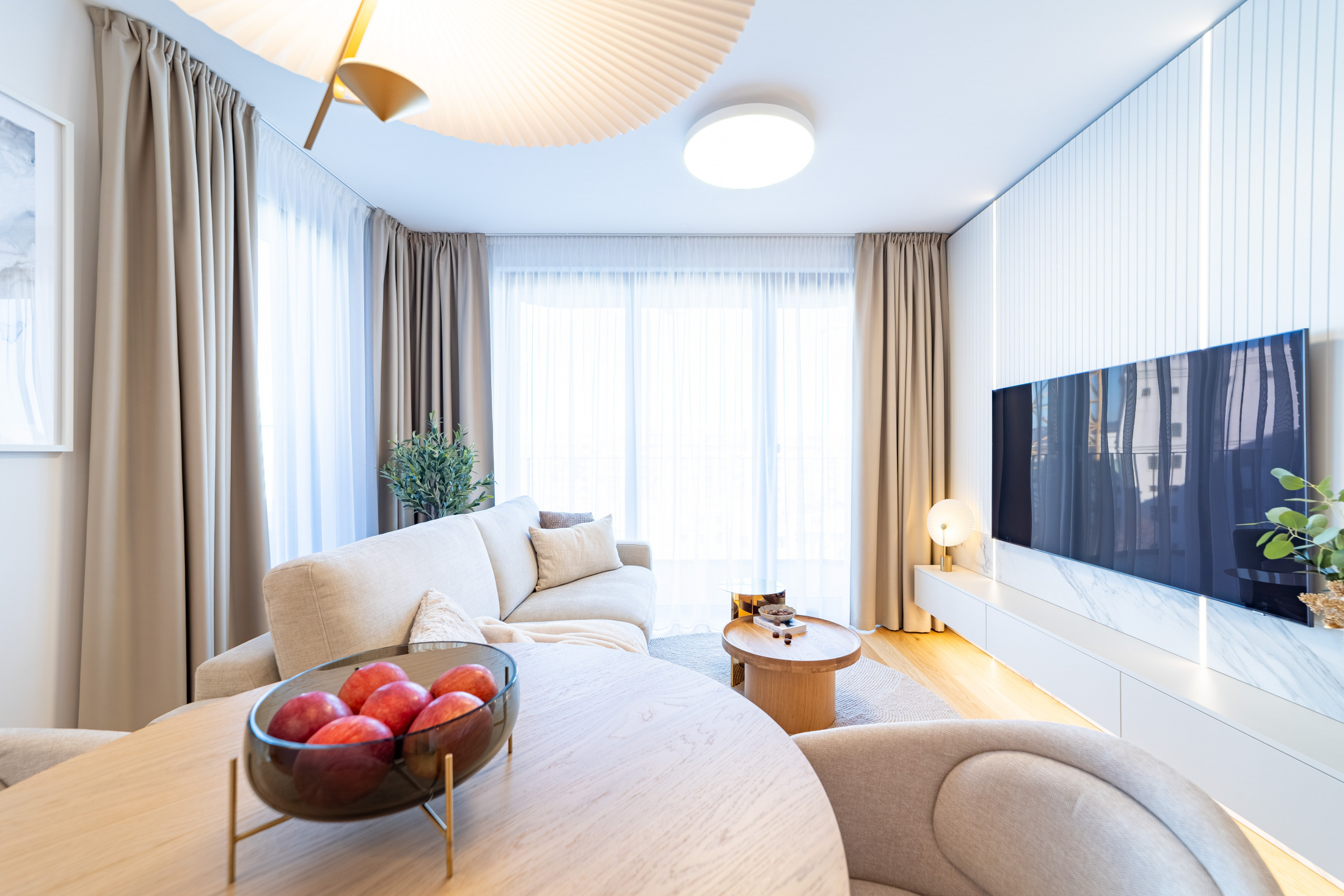 Interiér bytu Eurovea Tower II. s výhľadom na mesto
