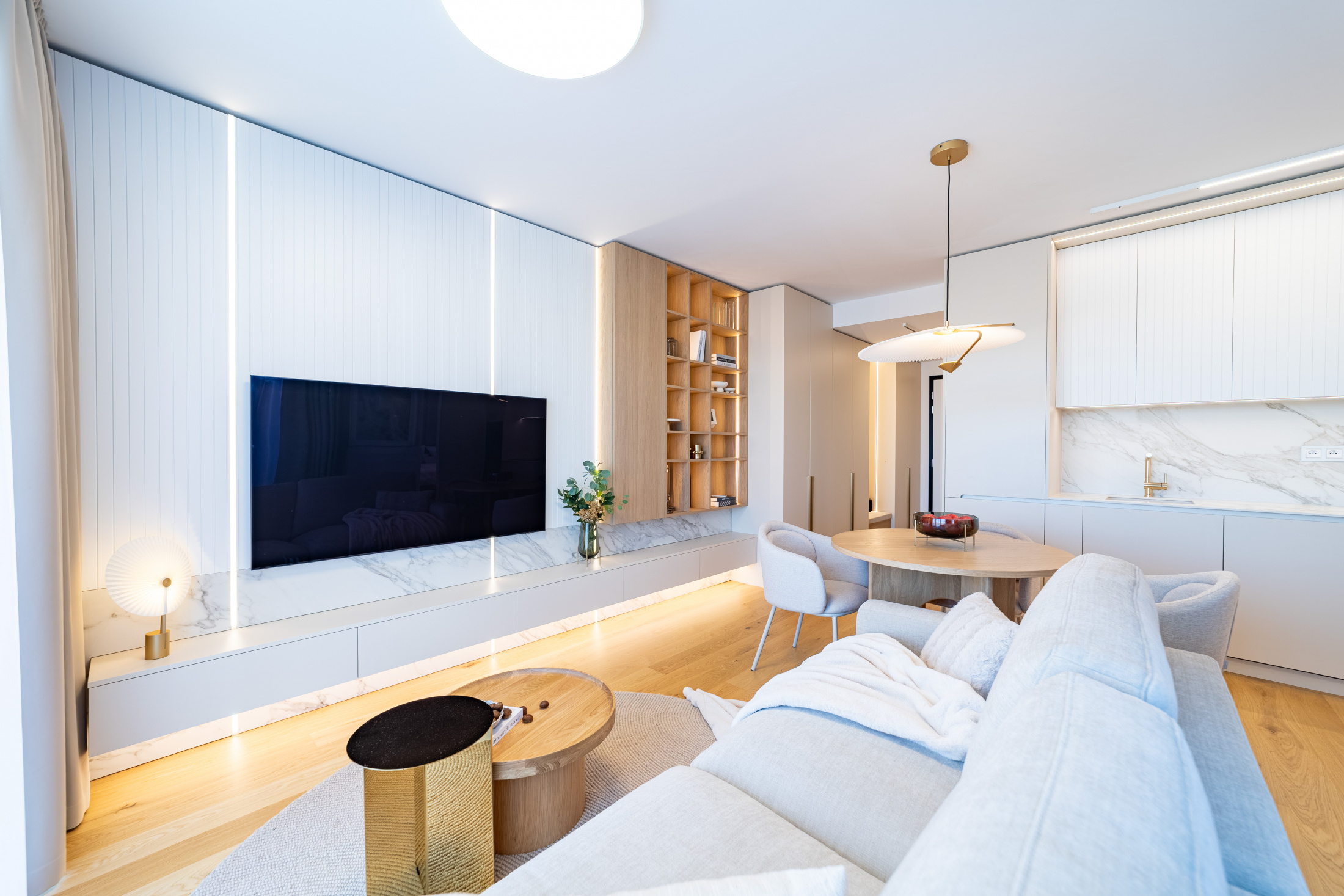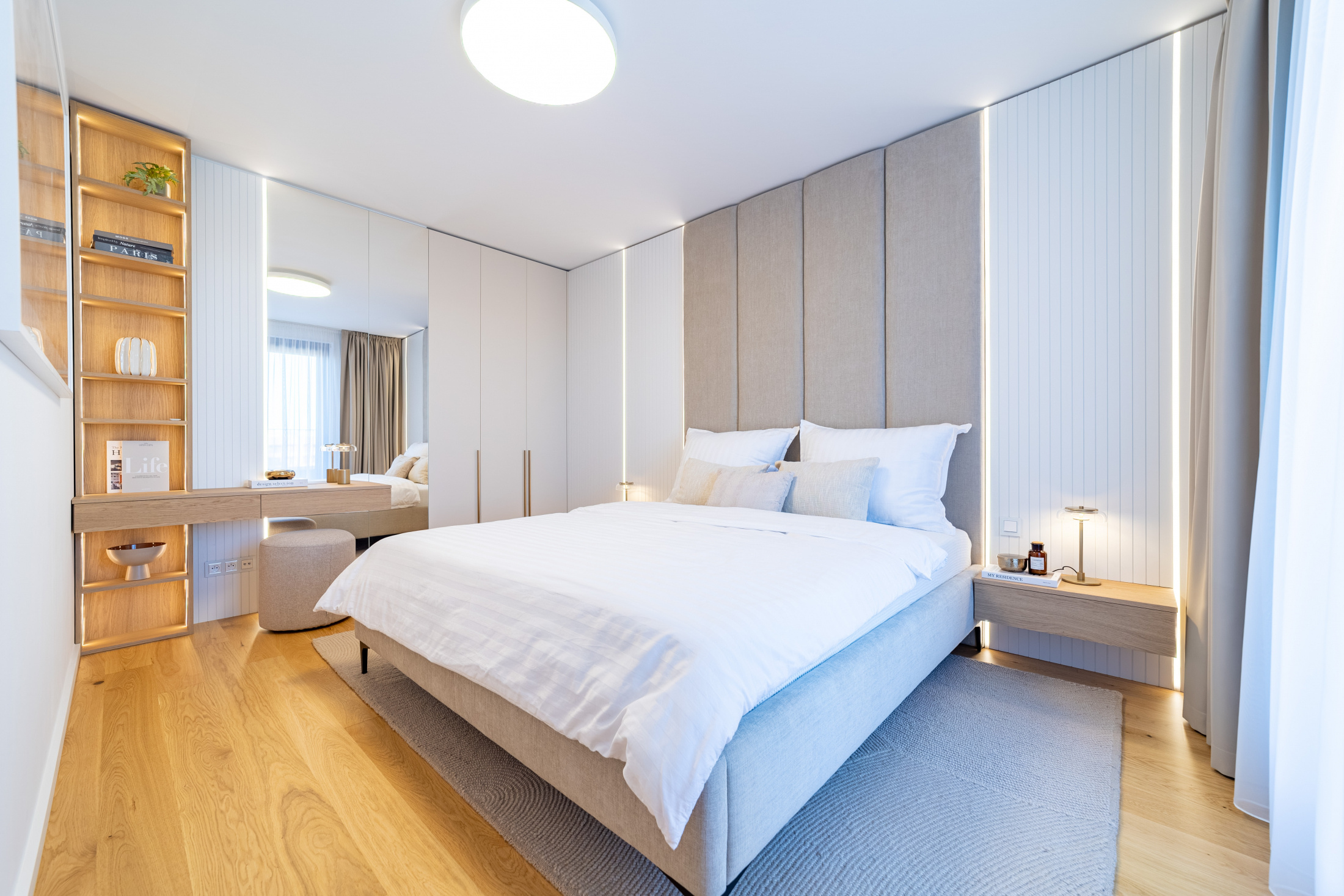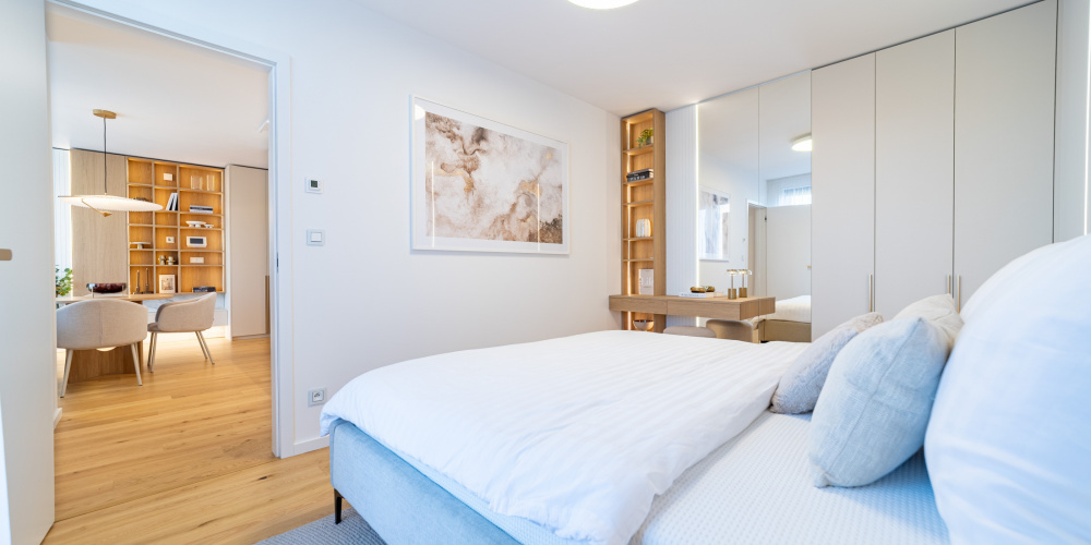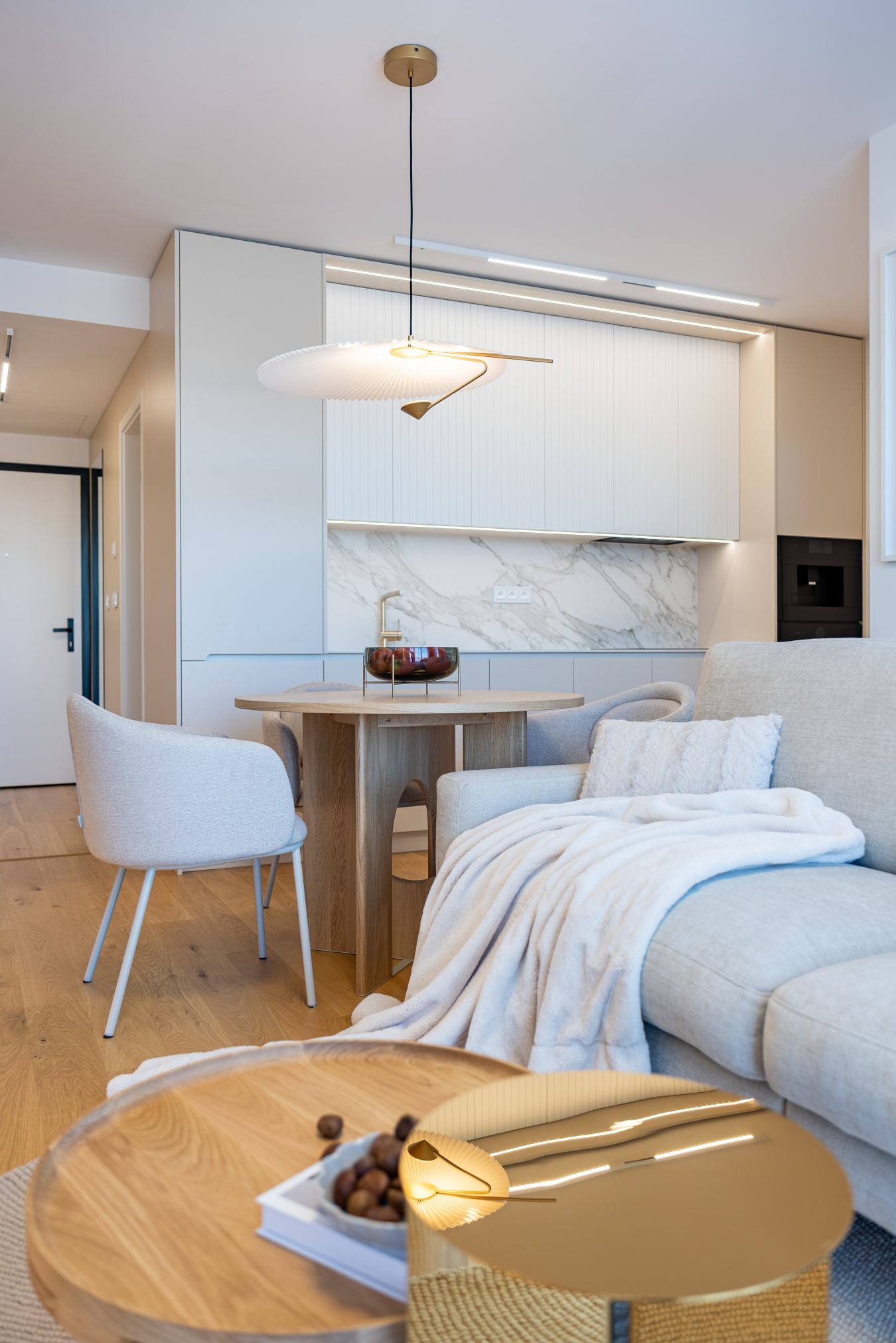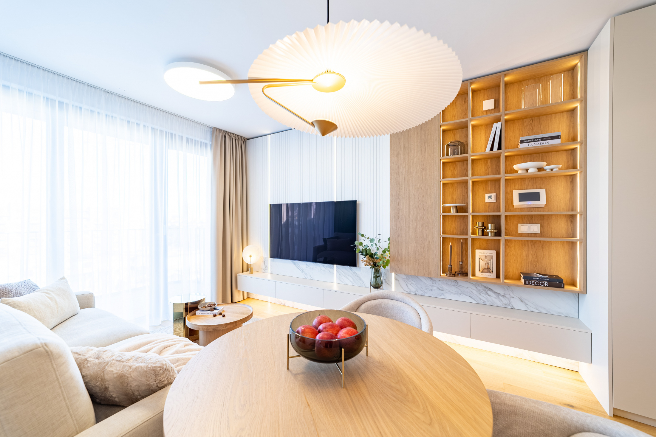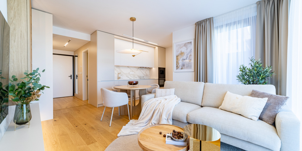 Interiér bytu Eurovea Tower II. s výhľadom na mesto