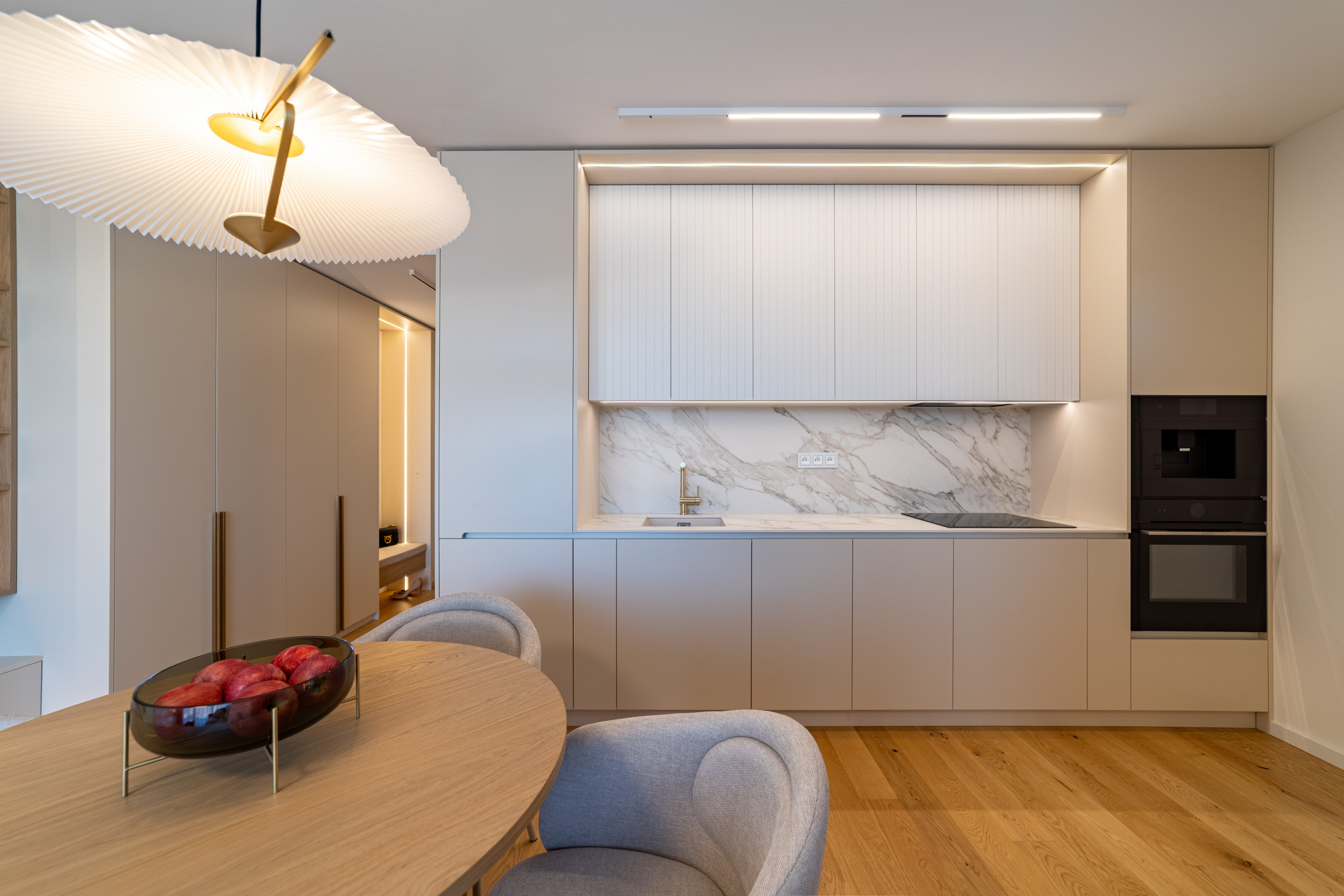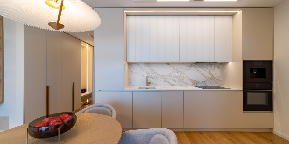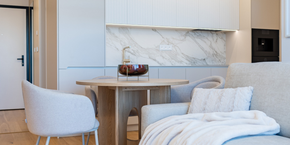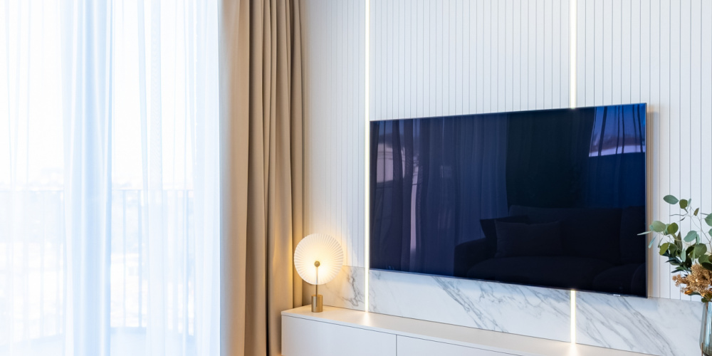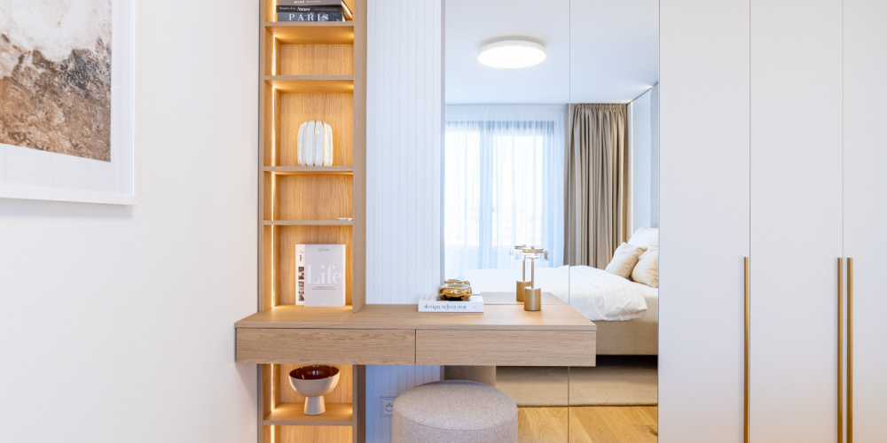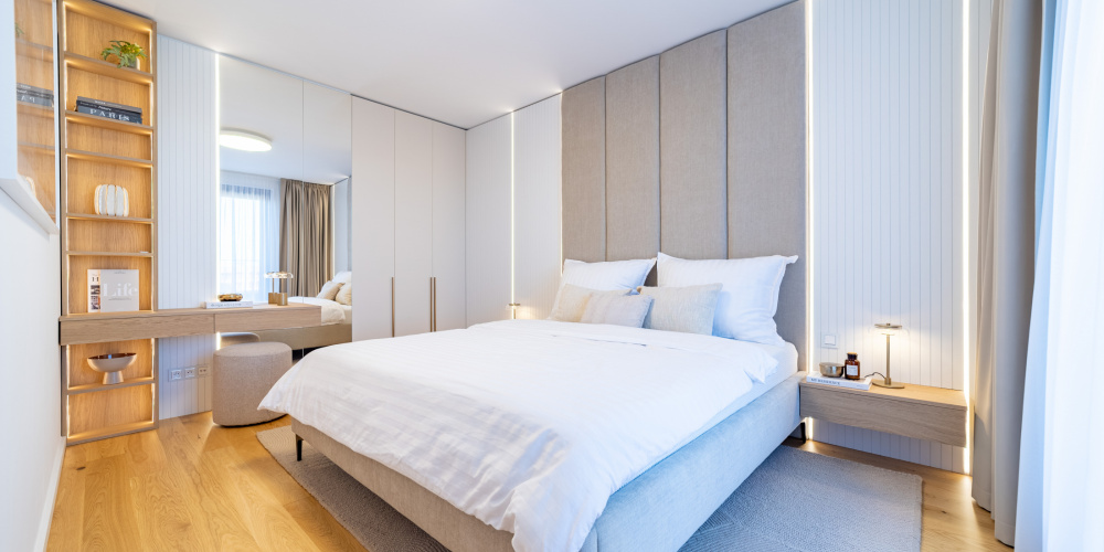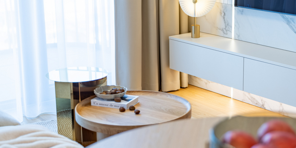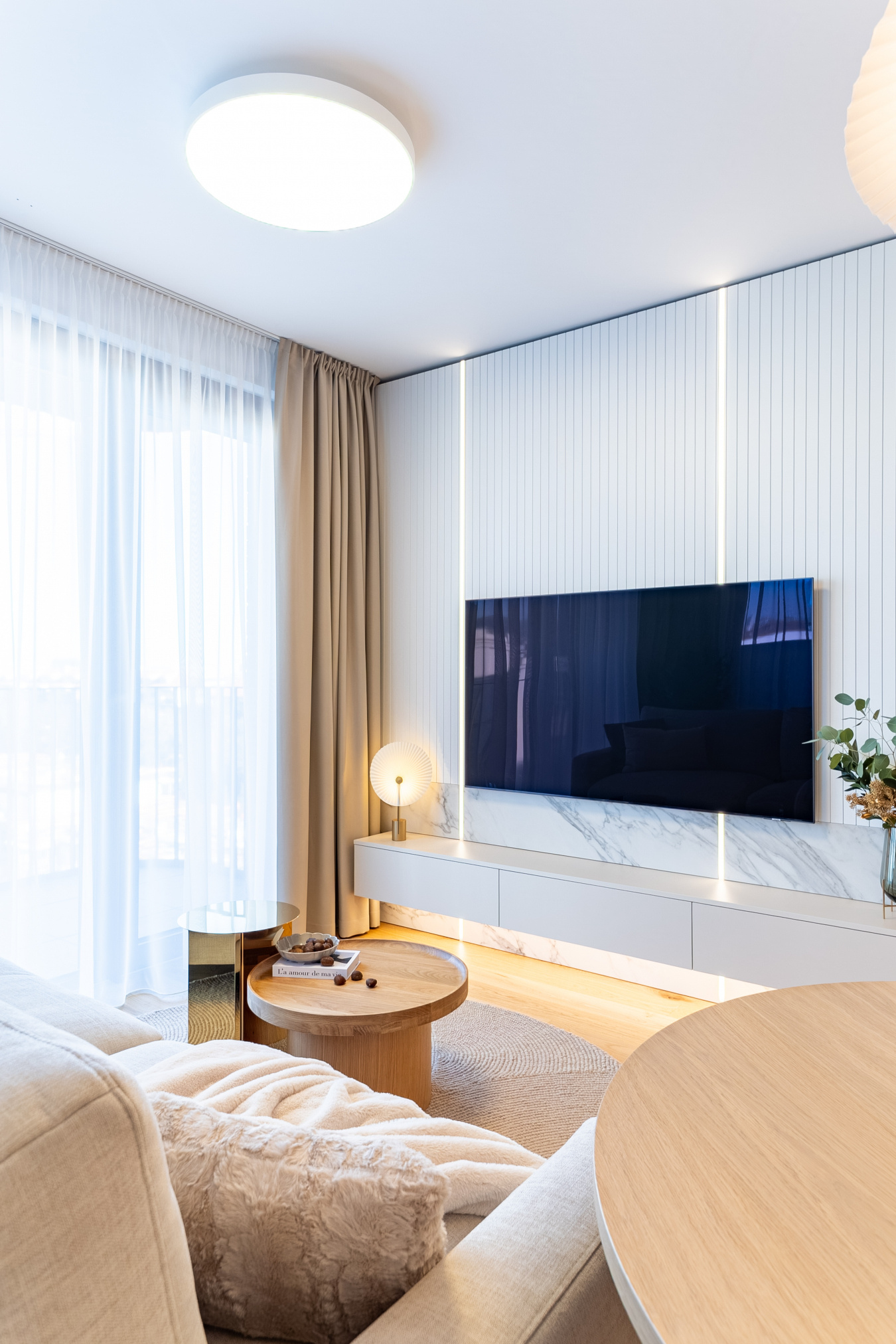 Interiér bytu Eurovea Tower II. s výhľadom na mesto