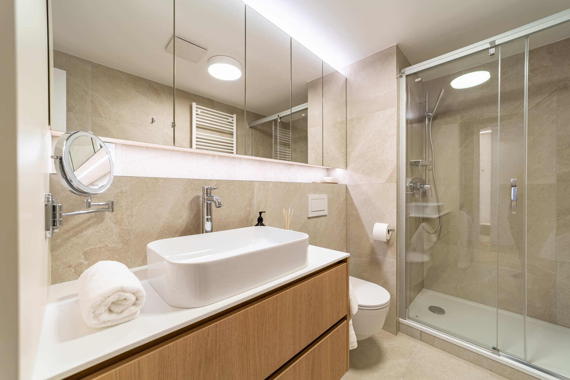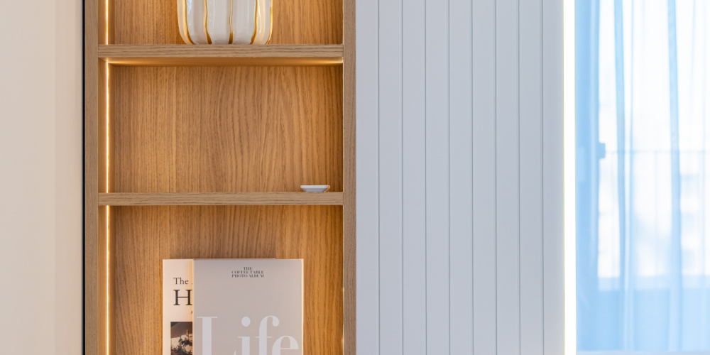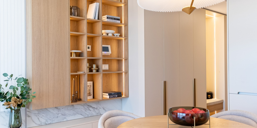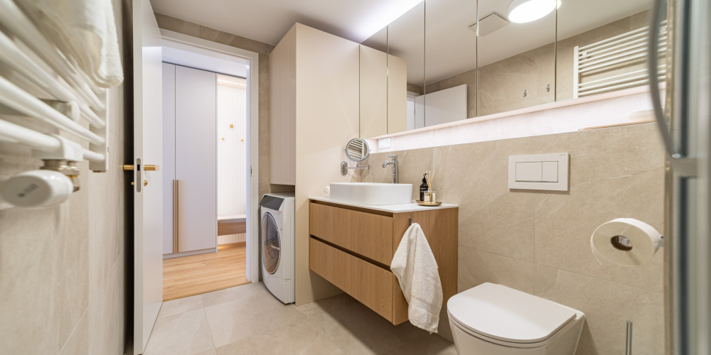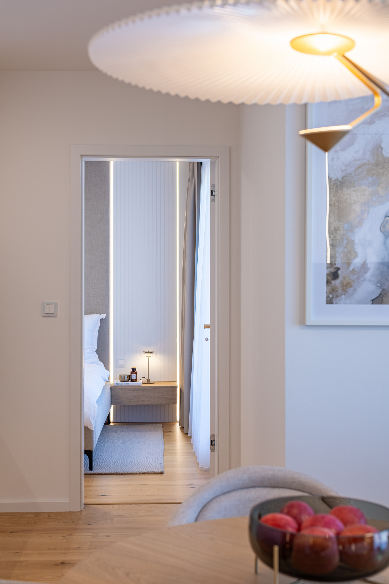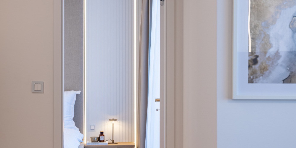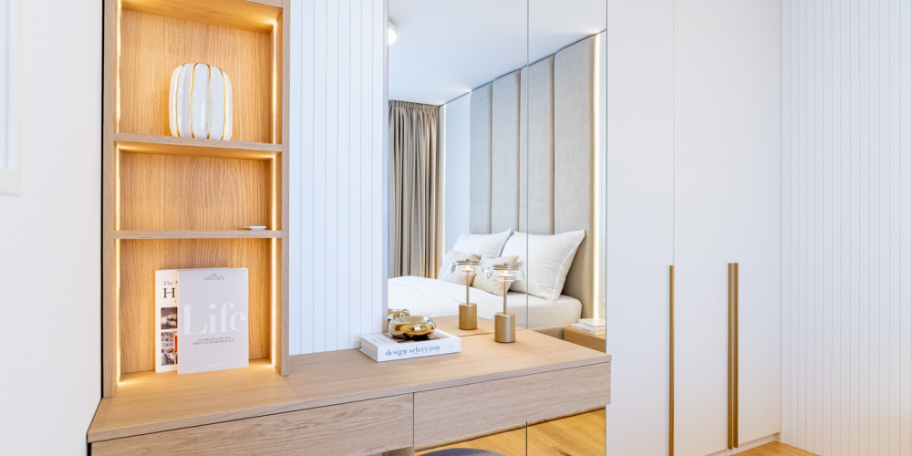 Interiér bytu Eurovea Tower II. s výhľadom na mesto