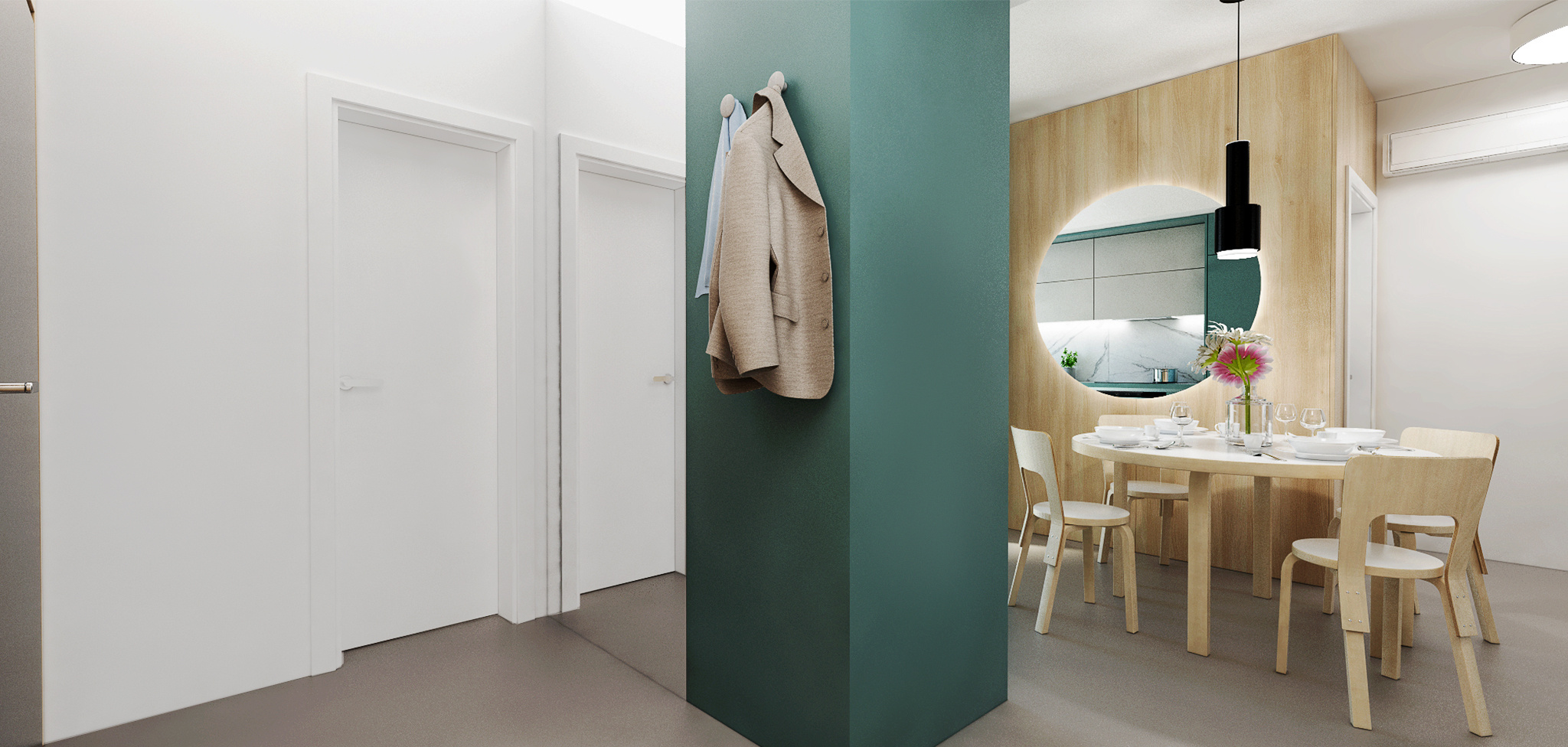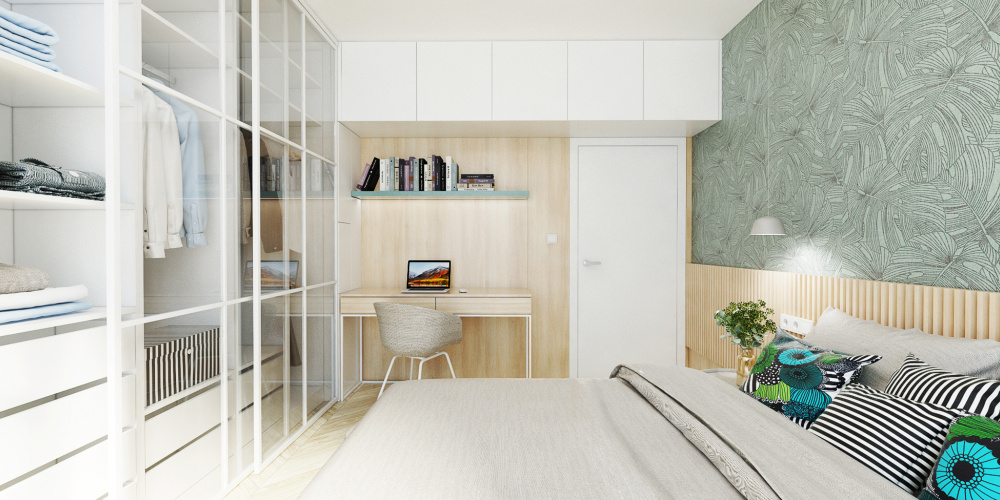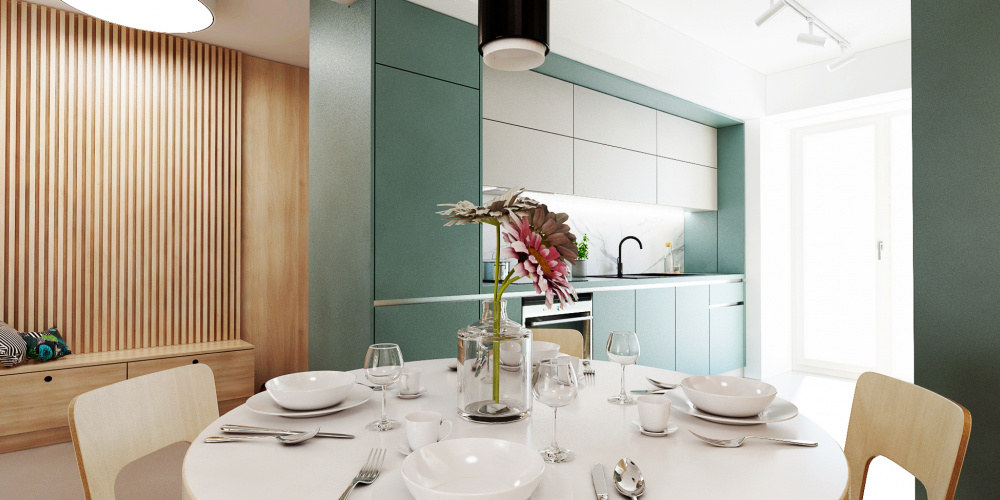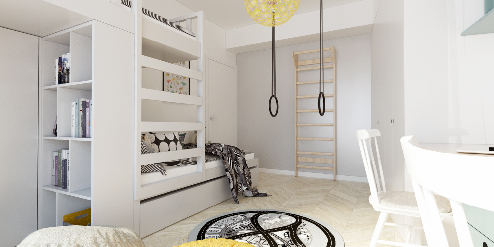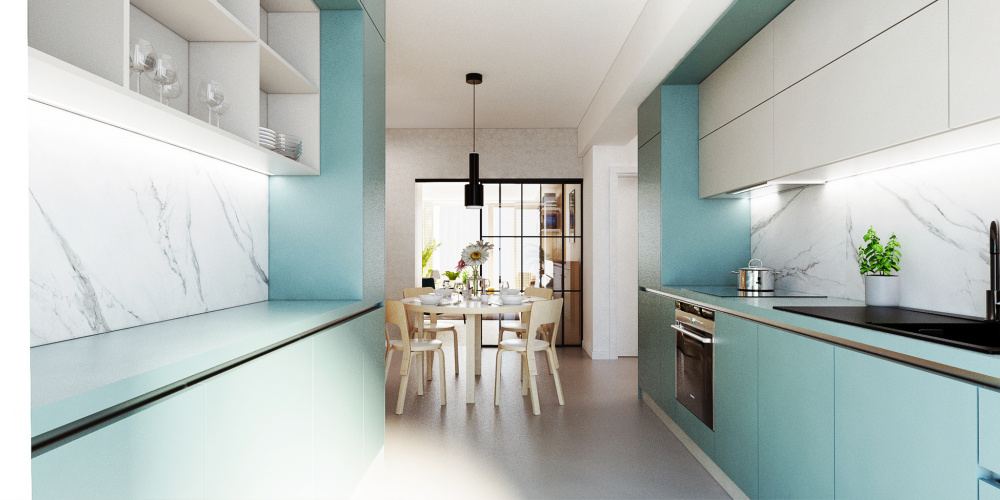Výnimočný interiér vznikol na základe predstáv našich odvážnych klientov. Priestoru dennej zóny dominuje kuchyňa v marino odtieni, ktorá zapadá do návrhu spolu s výraznými tapetami, solitérmi a Marimekko závesmi. Priestor zdobia dizajnové solitéry, ktoré potešia oko nejedného znalca a celý byt prepája škandinávsky štýl, ktorý si majitelia zažili priamo v týchto krajinách a priniesli si ho so sebou domov.