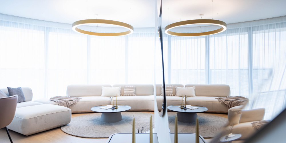 Interiér bytu Eurovea Tower II. s výhľadom na mesto