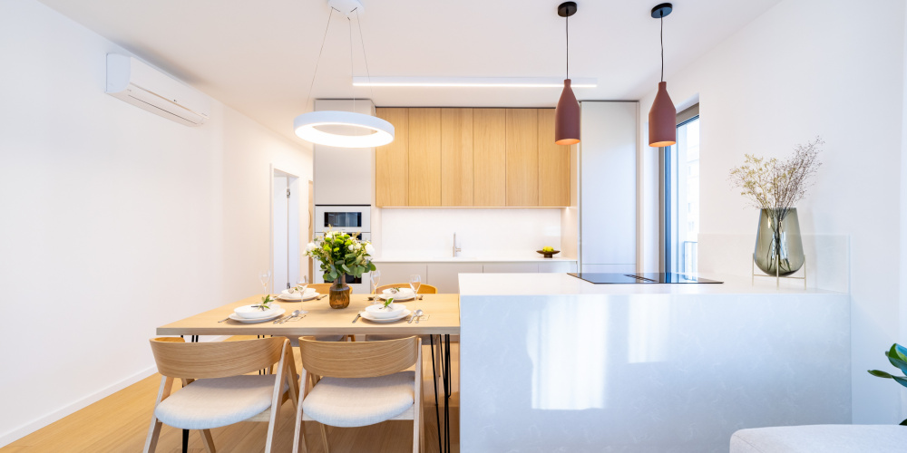 Interiér bytu Eurovea Tower II. s výhľadom na mesto