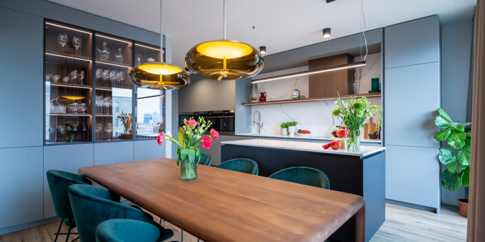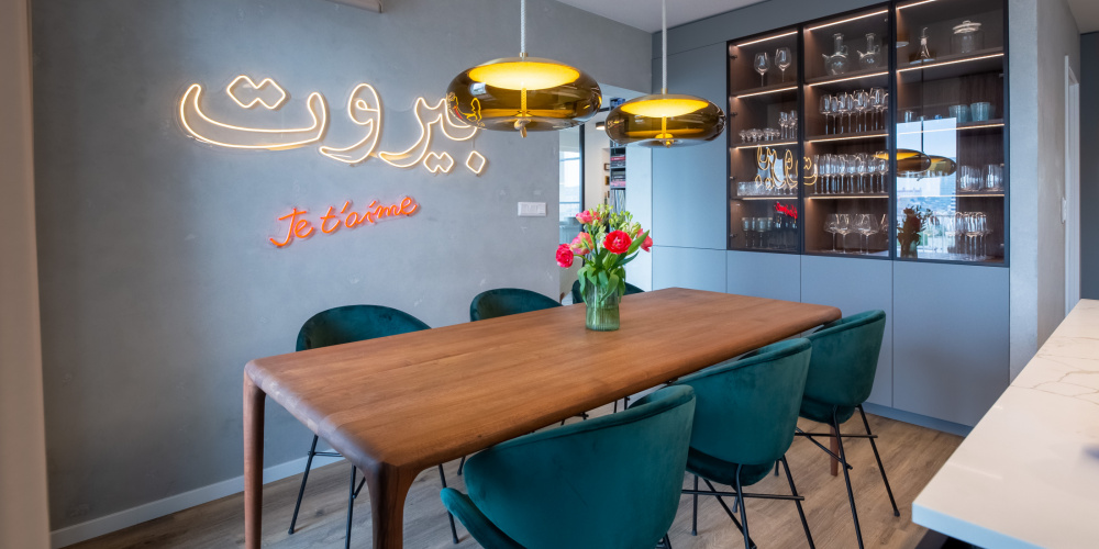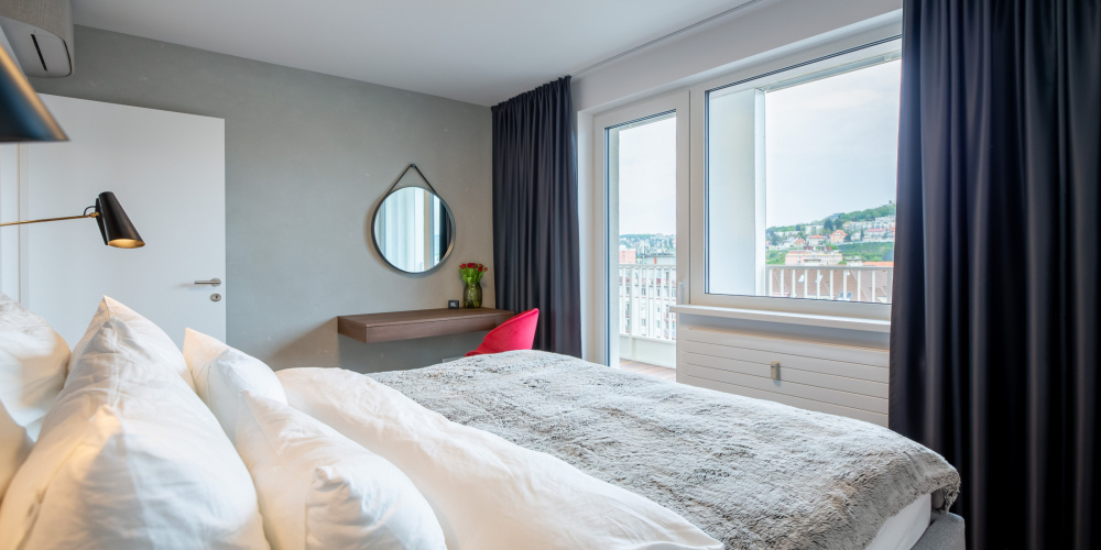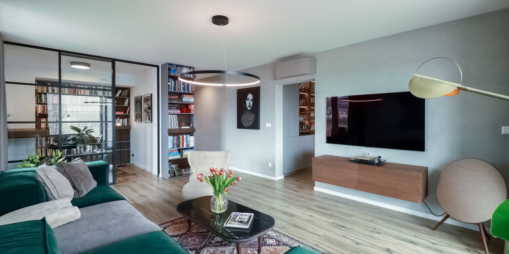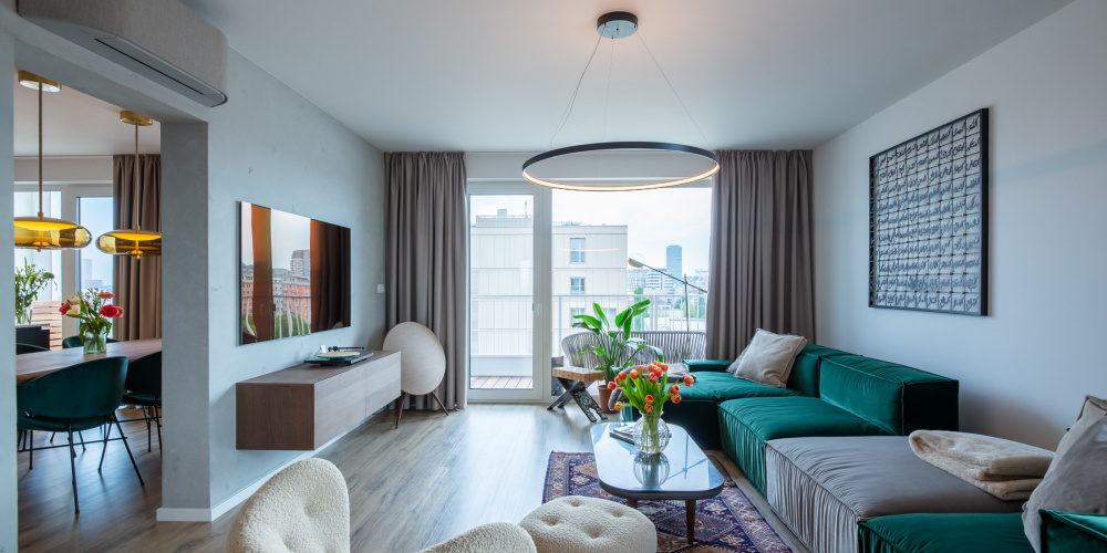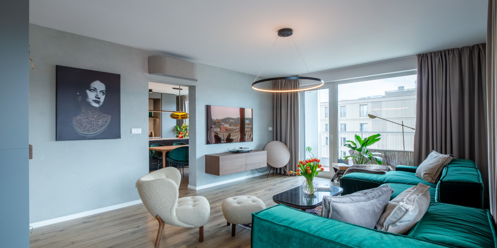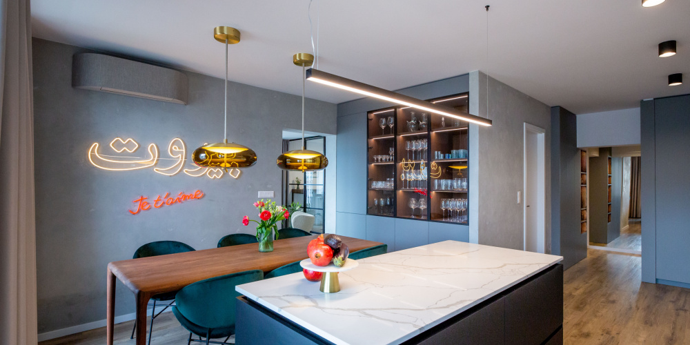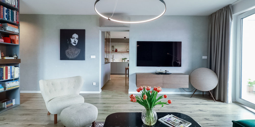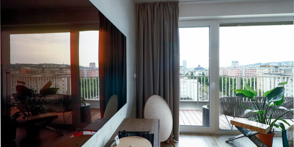 Tento priestranný byt s orientáciou na 3 svetové strany sa nachádza na jednom z najvyšších podlaží projektu. Poskytuje nádherné výhľady na mesto a zabezpečuje bytu dostatok prirodzeného svetla v priebehu celého dňa. S takýmto bytom, zariadenom v štandarde, za nami prišli klienti s vycibreným vkusom a zmyslom pre dizajn. Tvoriť pre nich tento interiér, od projektu až po odovzdanie realizácie na kľúč, nám robilo nesmiernu radosť a zo spolupráce sa veľmi tešíme.