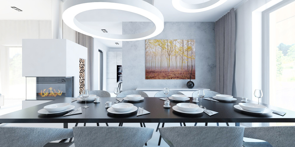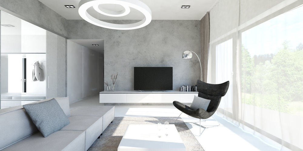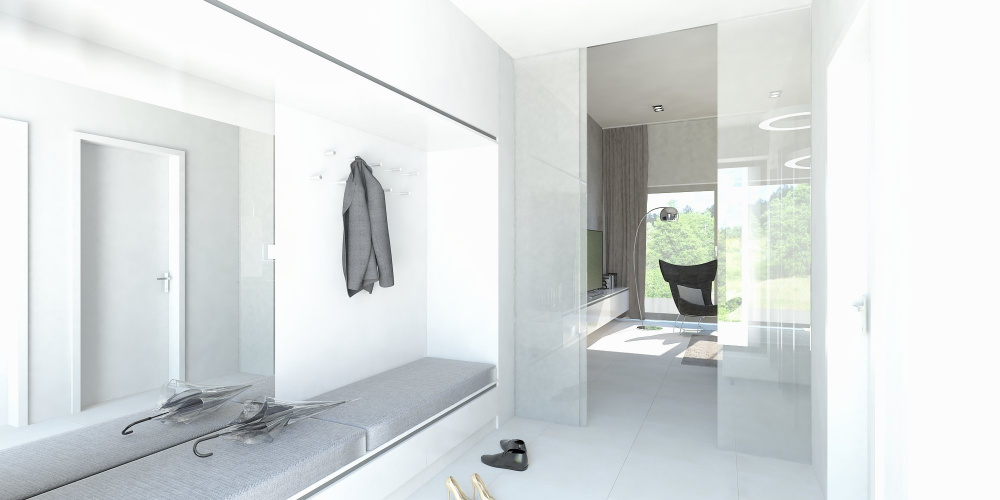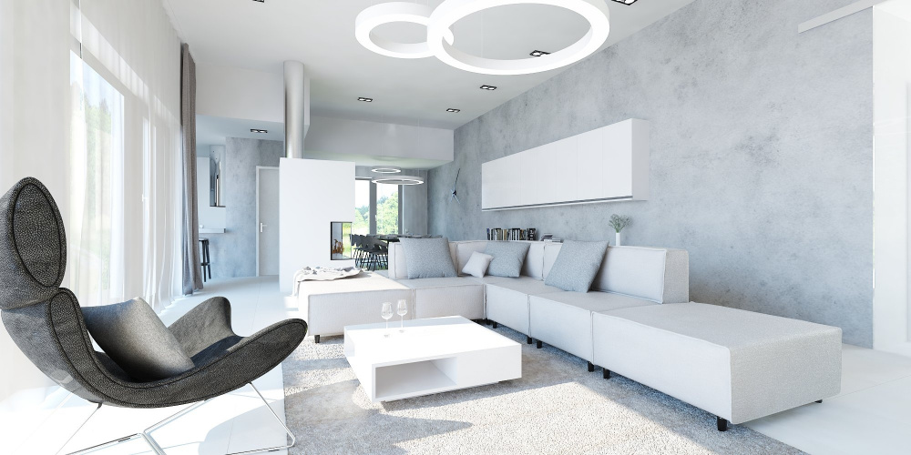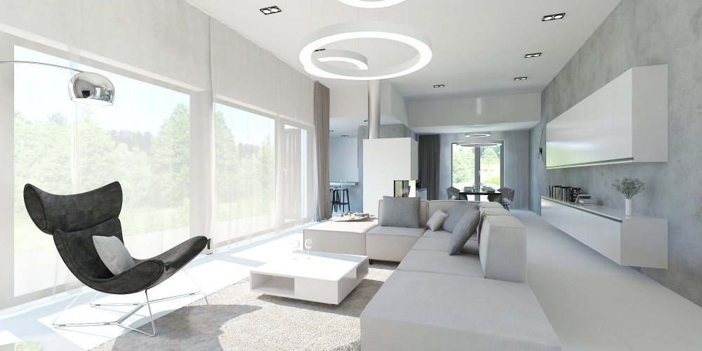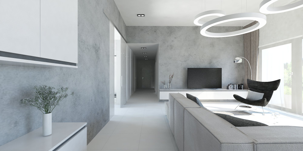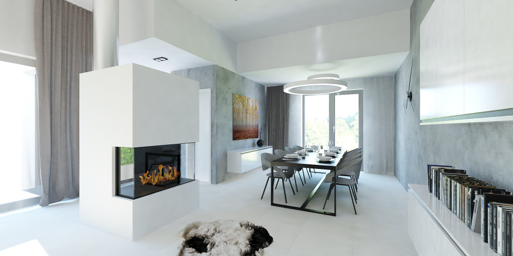 Senecký interiér z dieľne DOBRÝ INTERIÉR je veľkorysý, vďaka vysokým stropom a priestorovým možnostiam. Snahou bolo vzdušnosť podtrhnúť a preto sa projekt vyznačuje minimalistickou koncepciou, ktorej belostný charakter narúšajú len citlivo zladené betónové stierky. Čistotu horizontálnych línií striedmo dopĺňajú decentné doplnky a dizajnové svietidlá. Jedinečným prvkom je centrálne umiestnený krb, ktorý ostal opticky nenápadne začlenený do priestoru a zároveň naďalej slúži ako jeden z hlavných prvkov miestnosti.