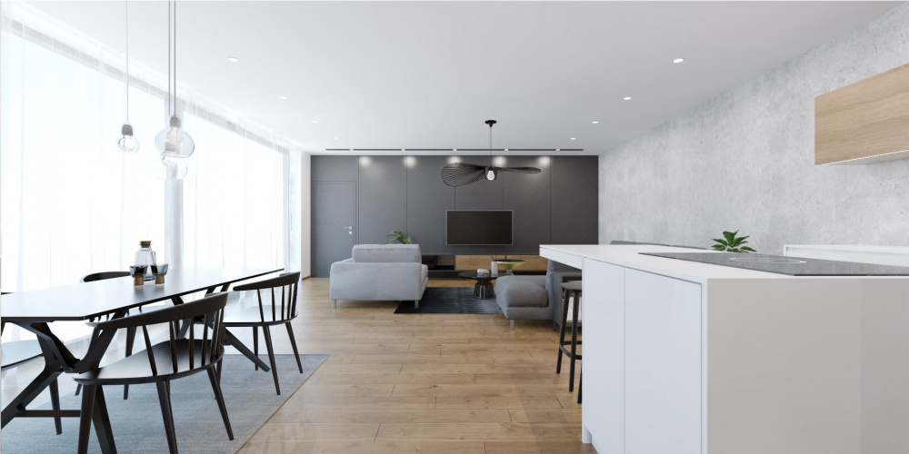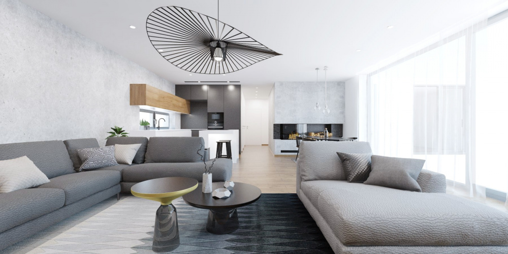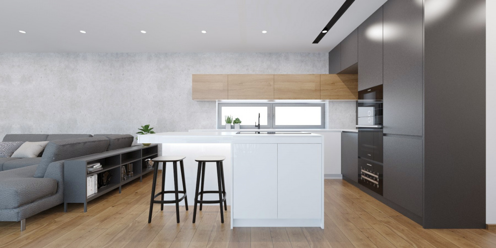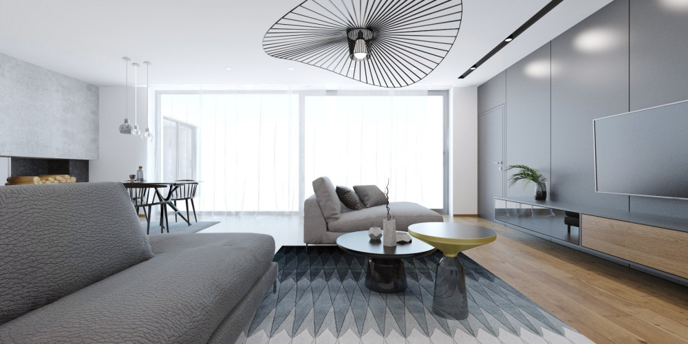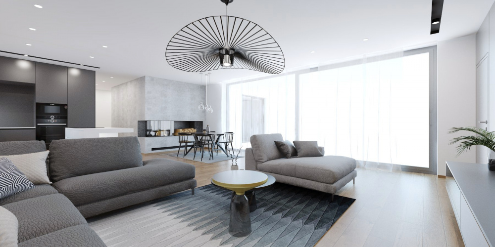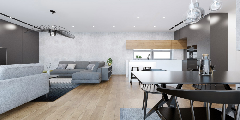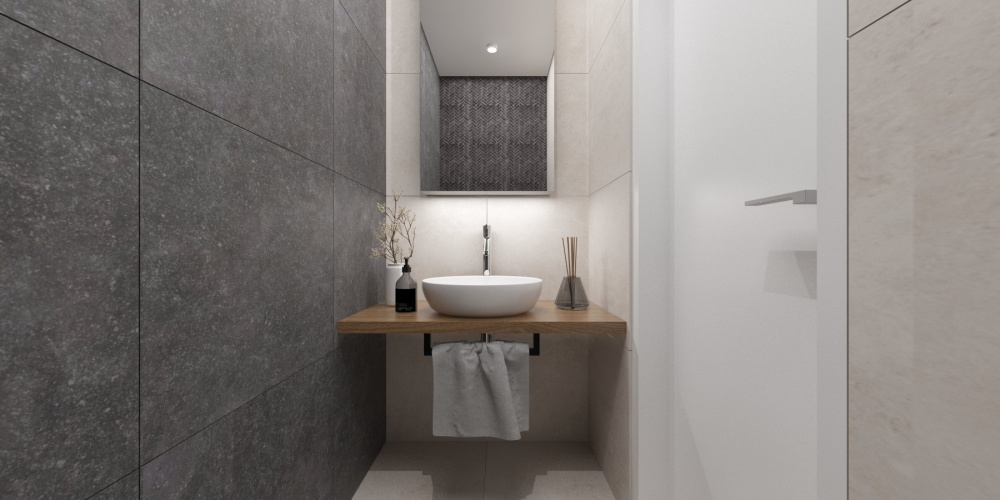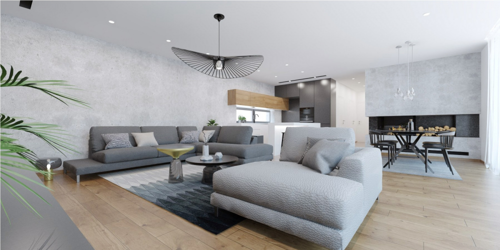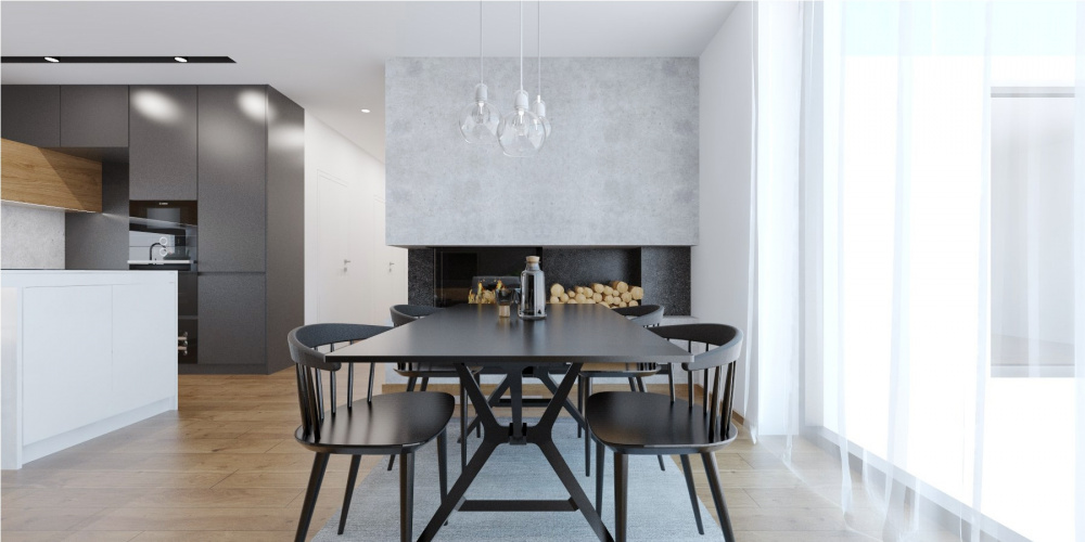 V projekte interiéru rodinného domu v Záhorských Sadoch sme zvolili príjemný kontrast tmavého šedého obkladu, teplého dubového dreva a bielej. Tento nadčasový základ dopĺňajú čierne akcenty v podobe solitérov a doplnkov, ktoré zaujmú elegantným riešením detailov a mäkkými oblými líniami.